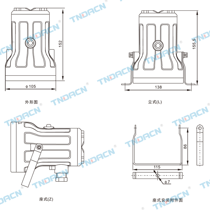 1.壳体采用高强度合金铝一次性压铸成型,表面经高速抛丸清理后高压静电喷塑。外壳结构紧凑合理、材质密度高强度好、