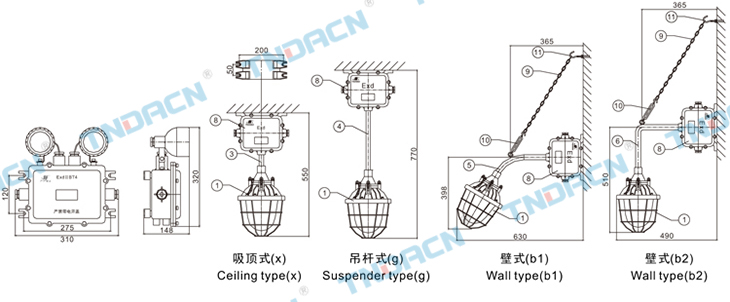 2.Explosive gas atmosphers: classⅡA ⅡB ⅡC orinflammable dust environment;