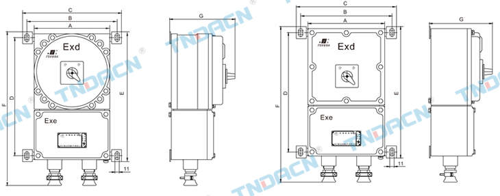 1.壳体采用高强度合金铝一次性压铸成型,表面经高速抛丸清理后高压静电喷塑。外壳结构紧凑合理、材质密度高强度好、防爆性能优良,表面塑粉附着力强具有良好的防腐能力,表面光洁,美观大方;