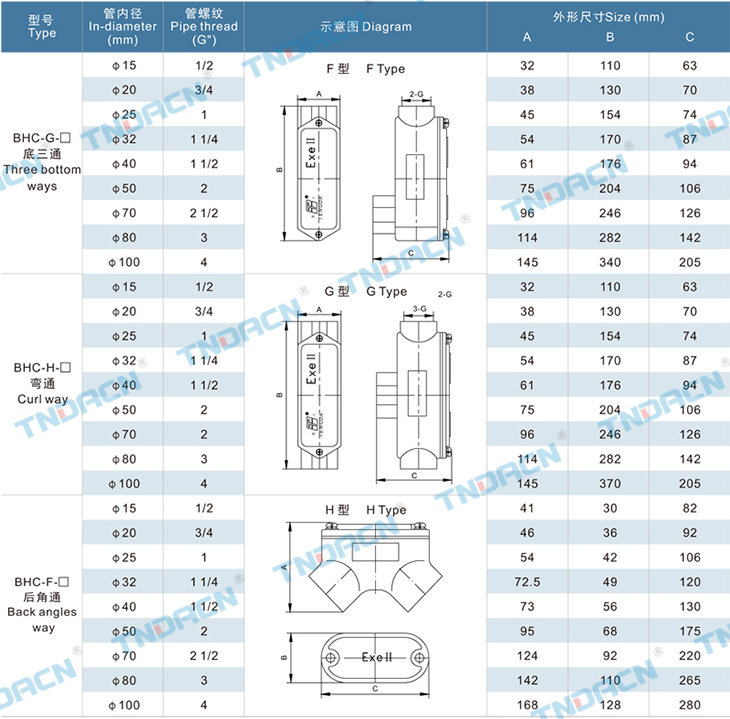 1.Shell made of high strength aluminum alloy casting off thesurface after blast cleaning by high voltage electrostaticspray. Shell compact structure, high density materialstrength, Explosion-proof performance, the surface ofplastic power adhesion ability with good anti-corrosion,the surface smooth, elegant appearance.