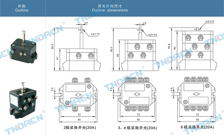 3.内装开关为隔爆型开关,极数可以根据用户要求自由叠加。