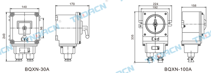 2.内装倒顺开关,用于电流100A以下的电气线路中,作为电源引入开关,并可控制电动起动、停止、换向等。