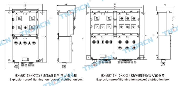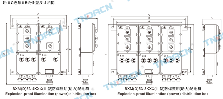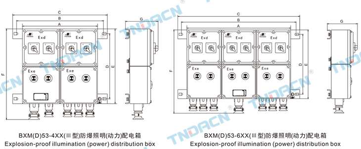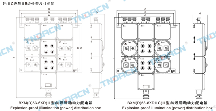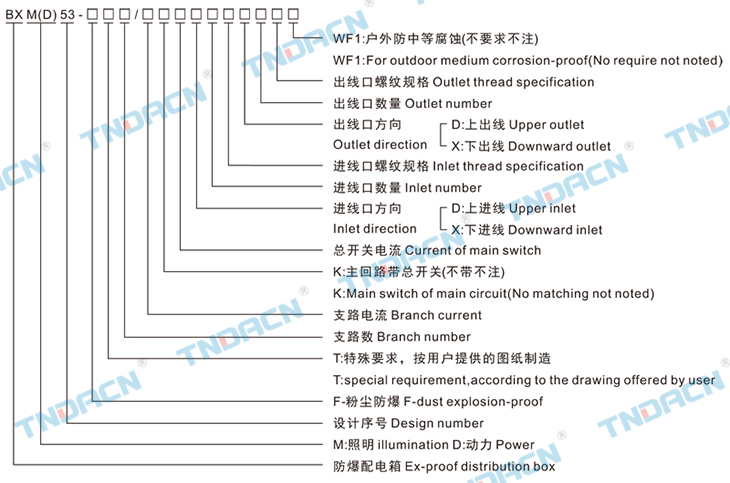 型号含义 Model implication BXM(D)53系列防爆照明(动力)配电箱(IIB、IIC)