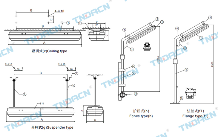 4.Inner electronic ballast is our company's special explosion-proof ballast, and it has protection functions of short circuit and open circuit. For the phenomenons of tubes aging effect and air leakage, it should have standby circuit in order to keep it working. The high energy saving is COSф≥0.98,and it has the wide range of input voltage. It can keep constant power output and have no impact on the lighting effect output within 172V~250VAC;