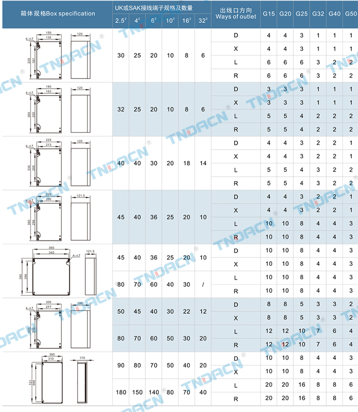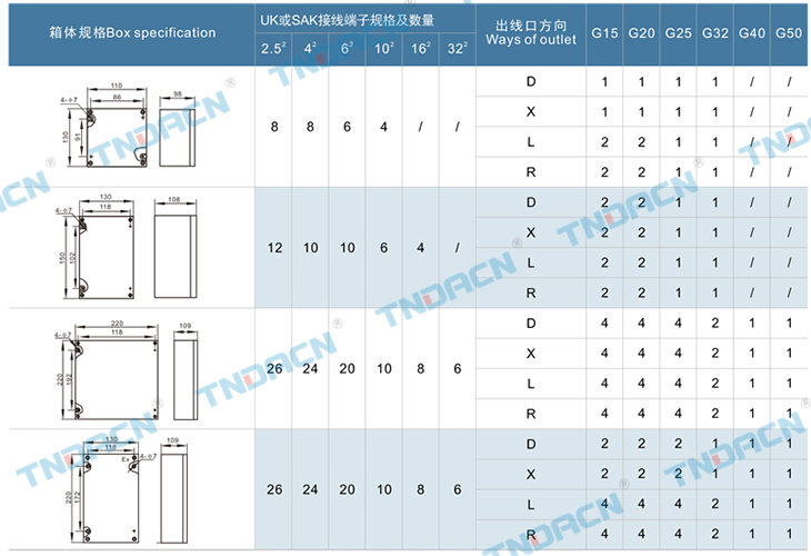 | 进出线口螺纹规格 Inlet and outlet thread sizes |