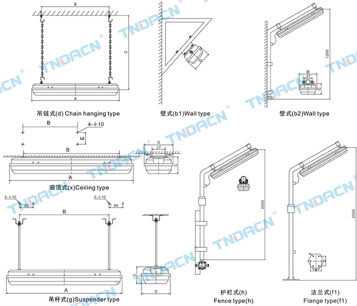 4.广泛应用于石油、化工、码头、食品、制药、军工等工厂企业,主要用为厂房、仓库照明,尤其是粉尘大的车间照明。