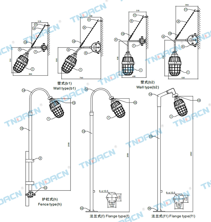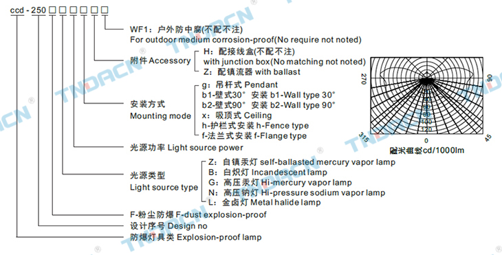 5.可配装白炽灯、汞灯、高压钠灯、金卤灯;