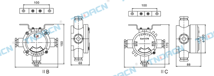 1. 1区、2区危险场所或20区、21区、22区危险场所; 2. ⅡA、ⅡB、ⅡC爆炸性气体环境或可燃性粉尘环境; 3. 户内、户外(IP65、IP66*); 4. 温度组别:T1~T4/T5/T6; 5.应用于石油、化工、航天、军工等场所。 1. Hazardous:division 1 &2,or 20,21,&22; 2. Explosive gas atmosphers:class ⅡA ⅡB ⅡC or inflammabledust environment; 3. Indoor or outdoor(IP65,IP66*); 4. Temperature class:T1~T4/T5/T6; 5.Widely using in the fields of oil, Chemical industry, spaceflight,war ind-ustry and so on.