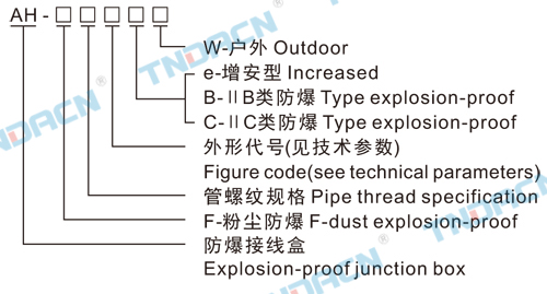 隔爆型接线盒代号,外形及名称一览表 Flame-proof junction box code, outline and descriptions as the following table.