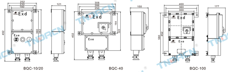 1.壳体采用高强度合金铝一次性压铸成型,表面经高速抛丸清理后高压静电喷塑。外壳结构紧凑合理、材质密度高强度好、 防爆性能优良,表面塑粉附着力强具有良好的防腐能力,表面光洁,美观大方; 2.内装断路器、接触器、热继电器等,可控制电机的直接起动、停止,并对过载、短路和失压进行保护; 3.钢管或电缆布线。 1.Shell made of high strength aluminum alloy casting off the surface after blast cleaning by high voltage electrostatic spray.Shell compact structure, high density material strength, Explosion-proof performance, the surface of plastic powderadhesion ability with good anti-corrosion, the surface smooth, elegant appearance; 2.Built-in circuit breaker, contactor, thermal relay, to start or stop motor, with overload, short circuit and voltage decompression protection functions; 3.Wiring with steel tube or cable.