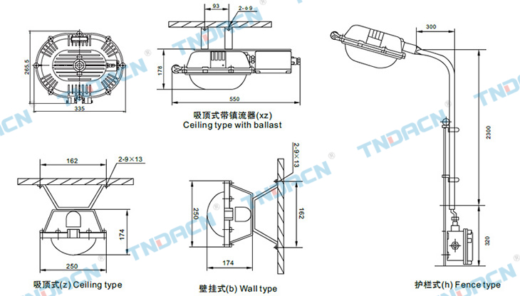 1.壳体采用高强度合金铝一次性压铸成型,表面经高速抛丸清理后高压静电喷塑。外壳结构紧凑合理、材质密度高强度好、 防爆性能优良,表面塑粉附着力强具有良好的防腐能力,表面光洁,美观大方; 2.高硼硅玻璃,透光性好,不锈钢外露紧固件; 3.反光罩经过专业二次配光设计,并得到实际应用验证,使用桔纹漫反射可使光线柔和,照射角幅度大; 4.电缆布线。 1.Shell made of high strength aluminum alloy casting off the surface after blast cleaning by high voltage electrostatic spray. Shell compact structure, high density material strength, Explosion-proof performance, the surface of plastic powder adhesion ability with good anti-corrosion, the surface smooth, elegant appearance; 2.Lamp housing is made of high borsilicate glass with great transmittance.Outer fasteners are made of stainless steel. 3.The reflect should get special software design of distribution for two times ,and it can have the comfirmation of actual test. Using orange-peel diffuse plate to make the light soft and made the irradiation range large. 4. Wiring with cables.