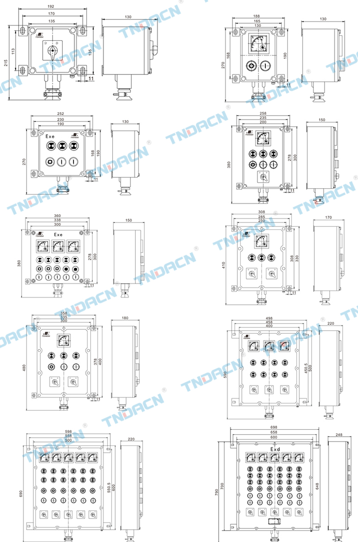 2.For increased safety enclosure, original modularization structure can be assembled freely according to user's requirements.Built-in explosion-proof indicator, ammeter, voltmeter, button and convert switch;