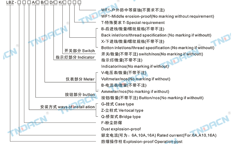| 注:防爆开关代号参数参考038-040页。 Note: Please see 038-040 P for parameter of explosion-proof switch code. |