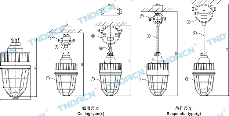 | DIP A20 TA,T4等效于 Ⅱ1D ExtD A20 T4(欧标) | IP65 | 10~14 | 3/4 | E27,E40 |