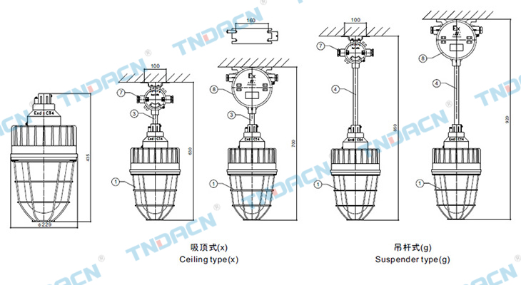 | ExdⅡCT4等效于 Ⅱ2G ExdⅡCT4(欧标) DIP A20 TA,T4等效于 Ⅱ1D ExtD A20 T4(欧标) |