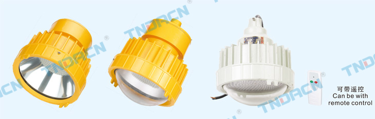 1.壳体采用高强度合金铝一次性压铸成型,表面经高速抛丸清理后高压静电喷塑。外壳结构紧凑合理、材质密度高强度好、 防爆性能优良,表面塑粉附着力强具有良好的防腐能力,表面光洁,美观大方; 2.灯罩材质采用钢化玻璃,透光性好,抗高能量冲击,且为防眩光设计,经过光学二次设计并得到了实际测试的验证; 3.本系列产品增加了遥控控制系统,为客户带来更加便捷的操作。 4.灯具为一体式结构,但光源腔、接线腔分别独立,安装维护方便,电气性能可靠; 5.反光罩材质为优质铝板,其反光设计经过了专业光学软件的二次配光设计,且通过了实际测试的验证,提高了灯具的使用率; 6.采用密封结构,保证了较强的防水、防尘能力; 7.灯体和出线套采用无线连接,便于用户安装和维修; 8.钢管布线。 1.Shell made of high strength aluminum alloy casting off the surface after blast cleaning by high voltage electrostatic spray. Shell compact structure, high density material strength, Explosion-proof performance, the surface of plastic powder adhesion ability with good anti-corrosion, the surface smooth, elegant appearance; 2.Lamp housing is made of high borosilicate glass with great transmittance and high energy shock resistance. It's the antiglare design. After designed by special software design of distribution for two times, it can get the confirmation; 3.This series adds remote control system, provide customers a more convenient operation. 4.It is holistic structure, however, the light cavity, connecting line cavity are independent. That's convenient to install and maintain, and it has reliable electrical properties; 5.Reflector is made of high-quality aluminium plate. After it has been designed by special software design of distribution for two times, and passed the actual test, the availability factor of lamps can be raised; 6.It has sealing structure, which has ensured the great functions of water proof and dust proof. 7.The lampbody and outlet sleeve use wireless wire connecting, it's convenient for the users to install and maintaince. 8.Wiring with steel tube.