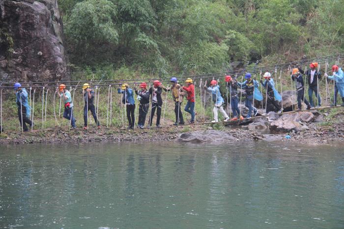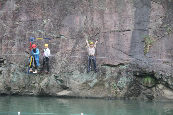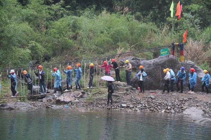 午饭后,全体员工前往九里溪拓展,第一关:过缅甸桥;第二关:抽板过河;第三关:飞檐走壁;第四关:滑索过河;第五关:飞夺泸定桥;第六关:携手并进;第七关:勇往直前;第八关:浮柱桥;第九关:凌波微步;第十关:荡索过涧。。。。。