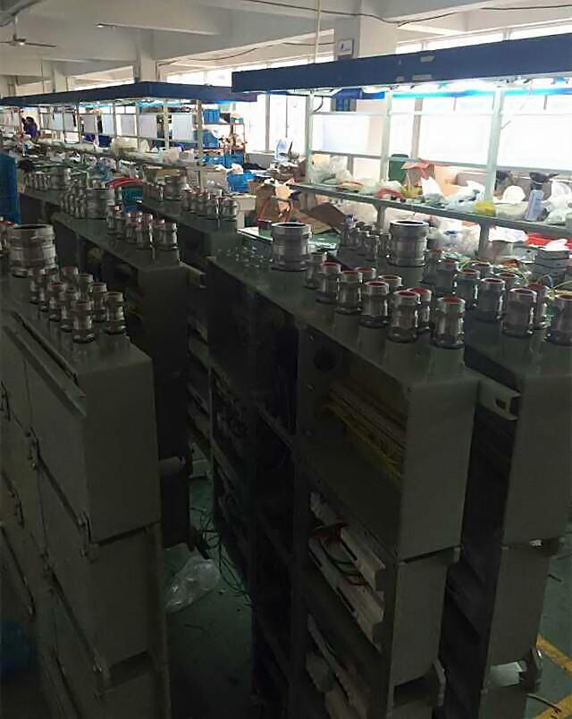 配铠装防爆格兰头的防爆配电箱,防爆/防护等级都比较高。 这次客户订的带不锈钢格兰的防爆配电箱,车间装配中。